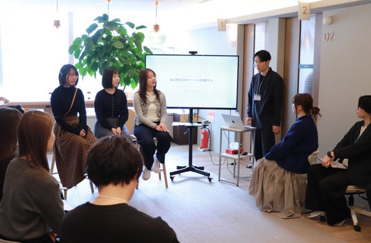ワークショップには、等身大の意見をもとにアイデアを探るため、実際に賛同企業内の20代の女性社員3名も参加し、本プロジェクトの推進パートナーであるnae株式会社の篠原さん進行のもとインタビューが行われました。