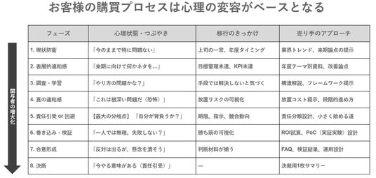▲PPF(Purchase Phyocology Flow)=ペルソナ毎のBtoB購買に対する心理変容を定義しどのようなコンテンツやきっかけを提供すべきかを考えるためのたフレームワーク