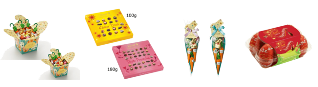 「リンツ ゴールドバニー」のほかにも、イースターのシンボルであるエッグをモチーフにしたチョコレートや、にんじん型のスティックチョコレートなど、見た目も楽しいイースターならではのギフトボックスやプラリネが登場いたします。彩り豊かなイースターコレクションは、おうち用としてもプレゼントとしてもお楽しみいただけます。