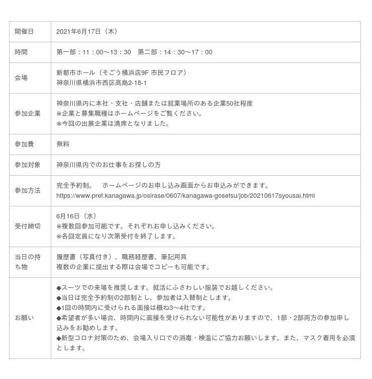 ◆かながわ合同就職面接会
