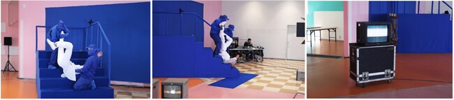 一方、「N」は「エヌ」と読まれ、「エ・ヌ」と2音節で発音される記号です。この音節を日本語的にひっくり返すと「ヌ・エ」とすることができます。「ヌエ」と発音されることばには、夜に鳥の漢字で示される「鵺」があります。「鵺」は、『平家物語』などに登場し、サルの顔、タヌキの胴体、トラの手足を持ち、尾はヘビという日本で伝承される物の怪であり、西洋的な表現をすればキメラということになります。「鵺」は能の演目としても知られ、紺色を基調としたもうひとつの世界は私たちが寝静まった夜に訪れる裏面の世界となります。