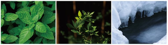 和種ハッカ(ミント)由来のメントール(※2)と国産米由来の上質なアルコール(※3)を配合した冷涼感を楽しめるアロマミストです。野生クロモジ(※1)の香りをベースに、和種ハッカ(ミント)(※2)のフレッシュな香り、樹木やゆず(※5)の香りをプラス。霊峰白山の雪どけ水、森のグリーンをイメージした涼やかで清々しい香りに仕上げました。