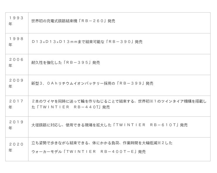 充電式鉄筋結束機 30年の歴史