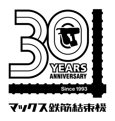 30の「0」の中心に機械シルエットを配置し、鉄筋結束作業の中心にマックスの鉄筋結束機があり続けてきたこと、これからもあり続けたい想いを込めています。30のフォントは、鉄筋結束機「TWINTIER」シリーズの特徴である、2本のワイヤを表しています。