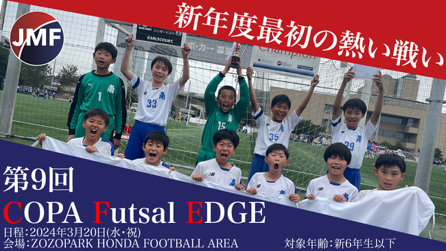 一般社団法人日本ミニフットボール協会(代表理事 櫛山匠、東京都渋谷区、以下 JMF)は、2024年3月20日(水・祝)に千葉県ZOZOPARK HONDA FOOTBALL AREAにて第9回のCOPA Futsal EDGEの開催をリリースした。