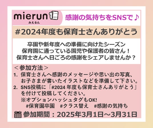 このキャンペーンを通じて、保育士さんへの感謝の気持ちが広がり、素敵な思い出がたくさん共有されることを願っています。