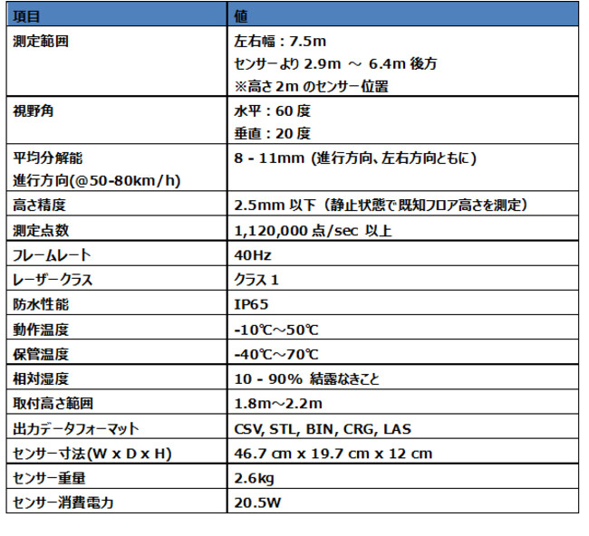 路面性状計測システム「TN-Twin Tracker」センサーの仕様