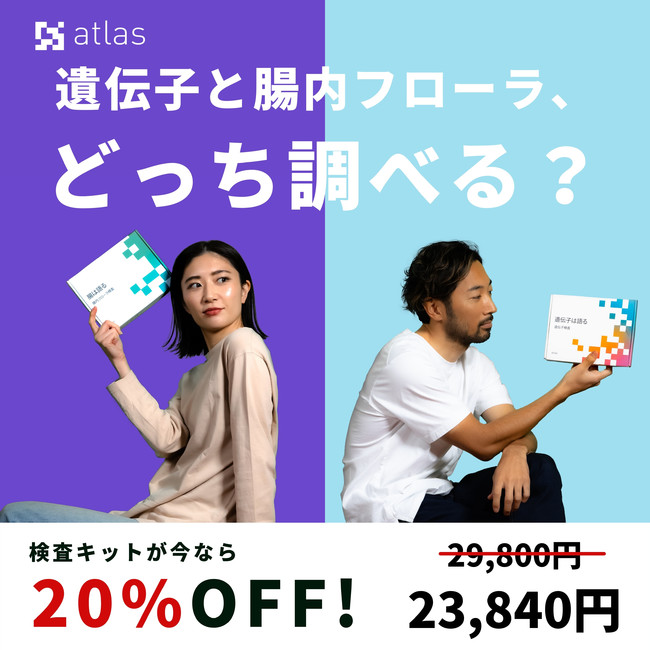 アトラス日本では、これらの消費者のバレンタインデーギフトにおける変化を踏まえ、大切な人の健康管理・維持に活用できる腸内フローラ検査や遺伝子検査をバレンタインデーに贈ることを提案し、20%オフのキャンペーンを実施します。自分のためにチョコレートを購入するように、この機会に大切な人と自分のために検査キットを購入して、現在の体調を可視化してみませんか?