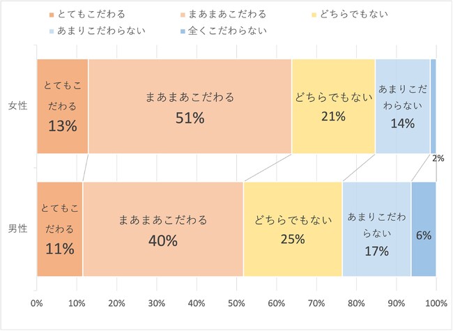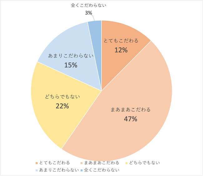 「Q9.部屋づくりやインテリアにはこだわる方ですか?(N=500)」という質問をしたところ、「まあまあこだわる」という回答が最も多く集まった。若者世代(Z世代)には「個性を大事にする」や「現実主義的である」といった特徴がある。そのため、徹底的にこだわる方や全くこだわらない方は少なく、「現実的に無理のない範囲で自己表現をする」という方が多いようだ。