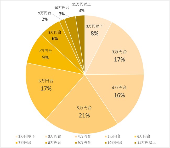 「Q5.物件・部屋を選ぶ場合の条件について教えてください(N=500)」という質問をした結果、大学生が最重要だと考える項目が「家賃」であることがわかった。次いで、「周辺環境、バス・トイレ別、駅チカ、防犯性」などの項目が大学生からは重要視されているようだ(重要と回答した方の割合)。以下ではより具体的に家賃や周辺環境、間取りに関する質問を行っている。●大学生の家賃平均
