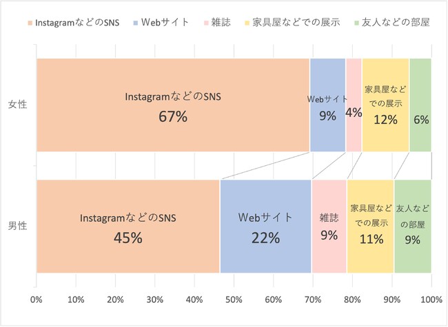女性の方が「とてもこだわる・まあまあこだわる」と回答した方がやや多かったが、大きな差はないようだ。●インテリア・部屋作りで参考にするもの