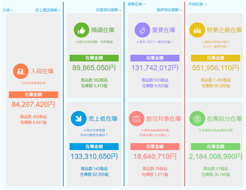 ■商品在庫(消化予測日・在庫数・在庫金額)し、商品定価販売率を上げ、在庫率を下げます