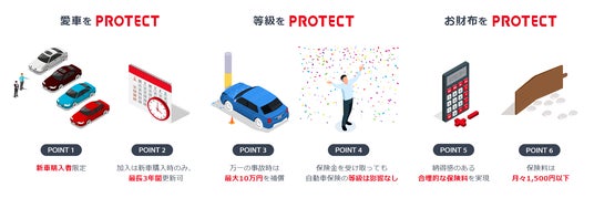 本保険では「愛車」「等級」「お財布」をPROTECTします。