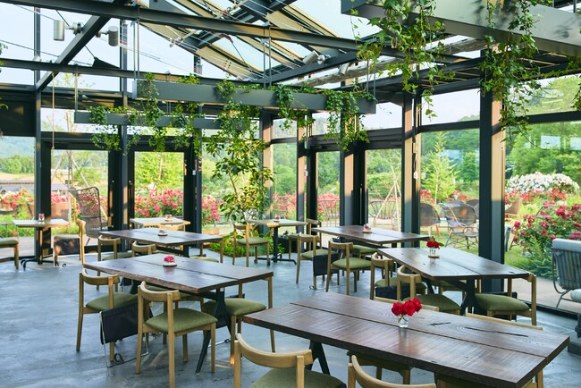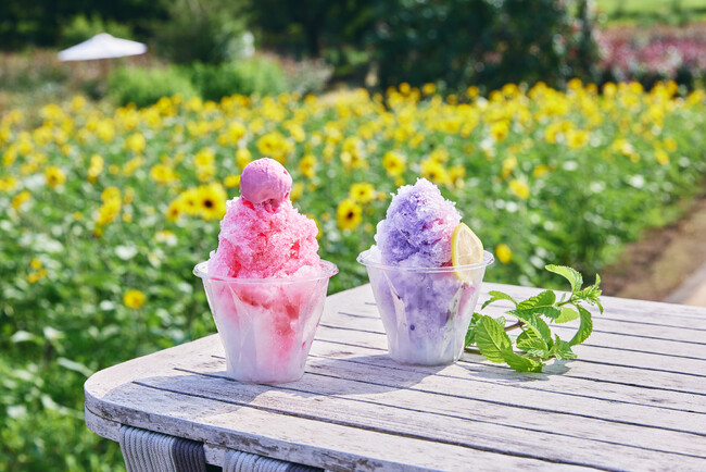 地元の銘柄豚を使ったキーマカレーや地鶏のからあげ丼など、園内の菜園野菜と旬の夏野菜たっぷりなお食事メニューが新登場!開放的な空間と、涼を感じるディスプレイの店内で味わいたいのは、選べるお花のシロップがカラフルな夏の定番「かき氷」。自家製練乳やバラのアイスクリームのトッピングもおすすめ!離れのお庭付き有料個室は冷暖房完備なので、プライベート空間で快適な時間を過ごせます。
