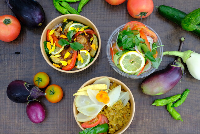 ひたち鶏のレモンから揚げ丼、弓豚のキーマカレー、洋風冷麺 各980円