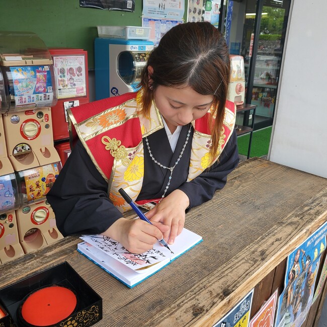 花押(サイン)を希望されたお客様にサインを書く場面も。