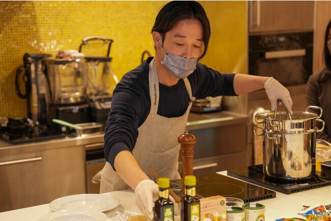 デモンストレーションの調理を担当したのは、料理家・出張料理人のKEITAシェフ。イタリアでの修行後、帰国後は横浜の自宅料理教室Casa K(HP: https://keitalastella.wixsite.com/yokohama-casa-k)をはじめ、都内各所にてイタリア料理講師として活動中で、出張料理、企業などのレシピ開発、提案なども多数実施されています。