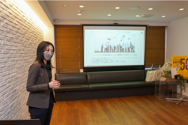 紹介の中では、メーカーの成り立ちとパートナー全員が大切にしている思い「人にも自然にも無害な食品を作ること・未来を担う子どもたちにきれいな水が飲めるような緑豊かな環境を残すこと・おいしい食品を作ること」についてを中心に話しました。
