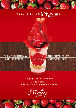 《モンシェール・ファームのいちご祭り》!モンシェールがミルクにこだわった限定のいちごソフトクリームやいちごサンデーやいちごスムージー、いちごパフェが楽しめます!