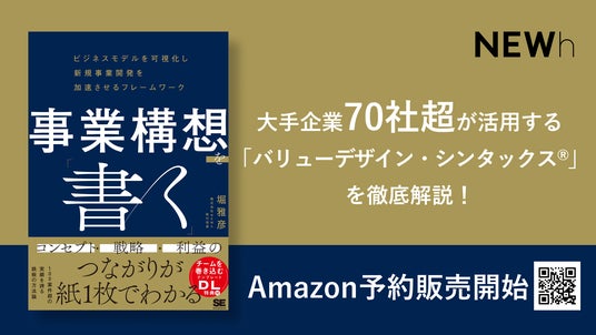 株式会社NEWh(本社:東京都千代田区、代表取締役:神谷 憲司)は、当社執行役員 堀 雅彦の著書『事業構想を「書く」 ビジネスモデルを可視化し新規事業開発を加速させるフレームワーク』の予約開始をお知らせします。
