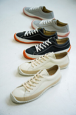 ヴィンテージスニーカーに影響を受けたクラシカルなデザインが特長。アッパーは、カンガルーレザーと牛革を組み合わせ、SPINGLE MOVEを象徴する巻き上げソールと共通する波型を随所に採用しています。高感度な大人に向けた高級感漂うシンプルなデザインで、タウンからビジネスまで幅広いスタイリングに対応できます。
