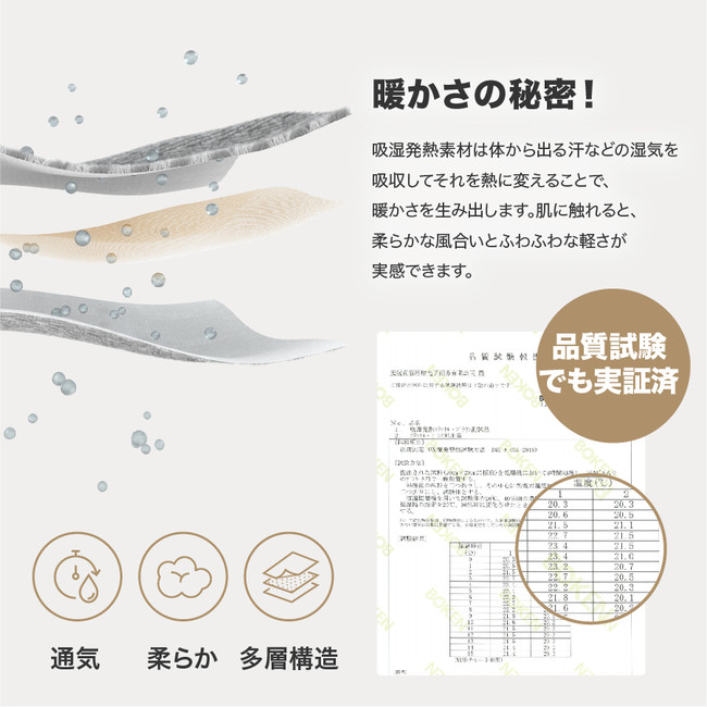 1. 吸湿発熱素材使用