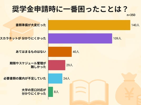 奨学金の申請において最も困ったことについて尋ねたところ、