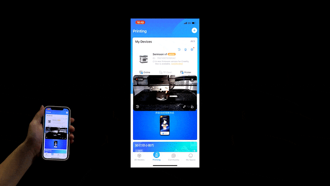 (Creality Cloudアプリのダウンロードが必要)