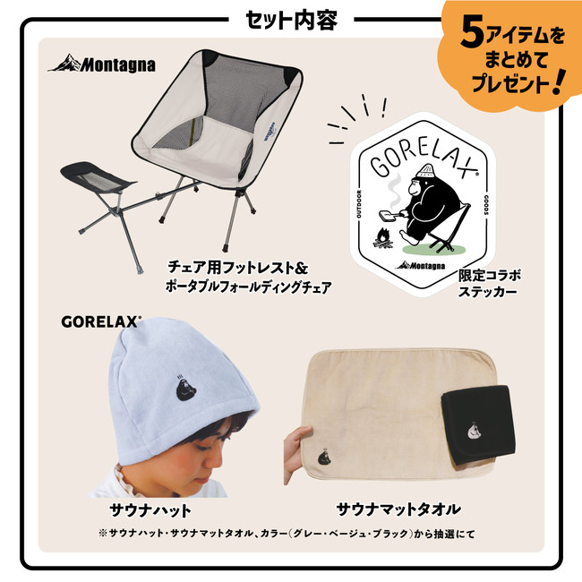 株式会社ハック(本社:大阪府東大阪市、代表取締役:有山哲也)が運営する、アウトドアブランド「Montagna(モンターナ)」は、雑貨の企画やデザイン、OEMを行う株式会社パイン・クリエイト(本社:大阪府大阪市)が手掛ける「GORELAX(ごリラックス)」とInstagramにてコラボキャンペーンを、2022年5月26日から6月5日まで実施します。