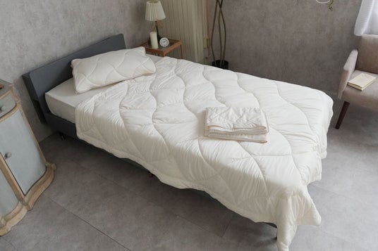 贅沢7層仕立てほこりが出にくいように、特殊わたを不織布4枚で包み込み、さらにやわらかなニット生地でサンドした贅沢7層仕立て。