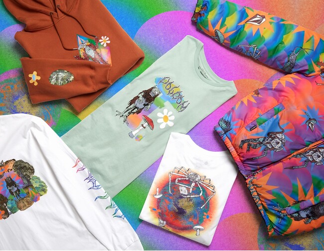 リチャード ’フレンチ’ セイヤーと クリッシー・アボットはイギリス出身の夫婦のアーティストで、普段はソロで活動している二人がタッグを組み、大胆な色彩感覚を融合させ、二人のアートなビジョンに基づいたユニークな Volcomの今季コレクションを制作しました。