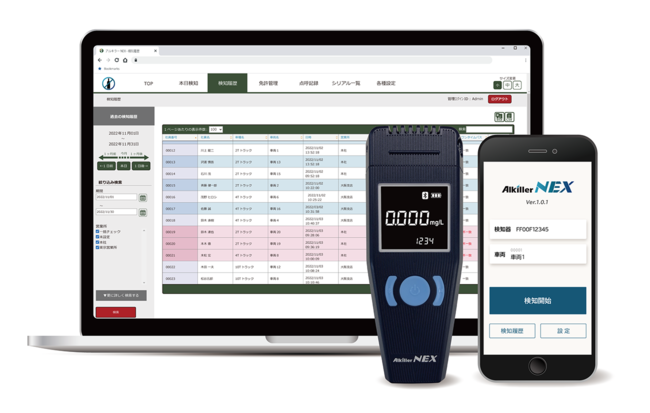 アルキラーNEXはアプリの操作性向上、さらなる不正を防止する機能の実装、短い検知時間で多くのデータを取得するなど、よりスピーディにより正確なデータを一括で管理できます。