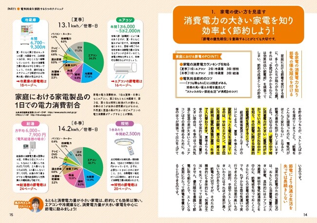 これ以外にも、冷蔵庫やキッチン家電、電気給湯器などの節約術も大公開するほか、電気料金の契約プランの見直し方やアンペア数の変更の仕方などについてもくわしく紹介しています。