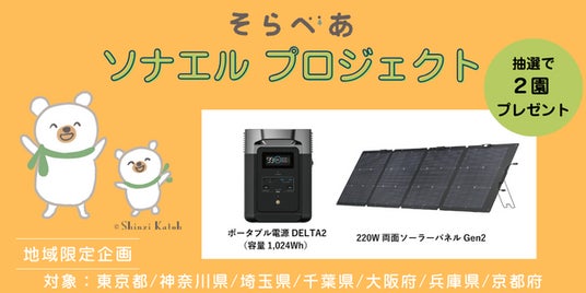 株式会社G&ECO(本社:東京都中央区、代表取締役社長:小島 盛利)は、NPO法人そらべあ基金(所在地:東京都港区、代表理事:冨田 秀実)の「そらべあソナエルプロジェクト」を応援します。「そらべあソナエルプロジェクト」は未就学児童の通う園の緊急時の適応力向上及び、環境や防災に関する意識啓発を目的とし、「ポータブル電源」と「ソーラーパネル」の寄贈と園児へ向けて環境と防災に関する教育プログラム「そらべあワークショップ」を開催する新しい取り組みです。
