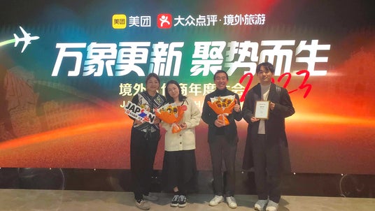 「大衆点評」は、年間アクティブ消費者数6.78億人、訪日中国人観光客の利用率55%を誇る、中国最大級の生活情報プラットフォーム[※1]です。Japanticketは「大衆点評」の日本国内正規代理店として、店舗ページの整備や広告運用等を通した訪日中国人観光客の集客をご支援しています。この度2024年1月12日に、「大衆点評」を運営する美団が中国・上海にて「2023年海外代理店大会」(2023境外合作商年度大会)を開催し、世界中から集まった代理店の中からJapanticketが「最優秀運用サポート賞」(最佳客户体验奖)を受賞しました。