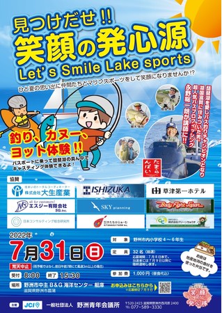 公益社団法人野洲青年会議所は、野洲市内小学校4年生から6年生を対象に7月31日(日)に釣り、カヌー、ヨット体験会を実施します