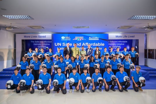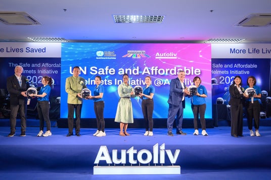 6月4日、タイ・チョンブリにあるオートリブの施設にて、国連の「Safe and Affordable Helmets(SAAH)イニシアチブ」と連携し、二輪車利用者のヘルメット着用を促進することを目的とした贈呈式イベントを開催しました。