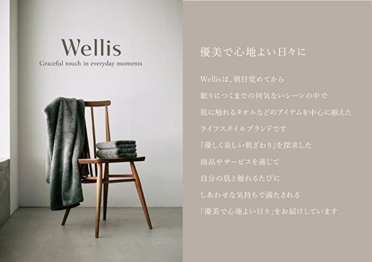「Wellis(ウェリス)」は、“優しく美しい肌ざわり”をテーマにしたライフスタイルブランドです。肌に直接触れるタオルやライフスタイルアイテムを通じて、日本各地に受け継がれる高度な技術と、職人たちの丁寧な手仕事の魅力を発信してきました。