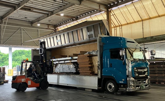 3社における「帰り便」を有効活用することで、空車での回送を削減し輸送を効率化。具体例として、ミサワホーム岡山工場(岡山県備前市)から同名古屋工場(愛知県江南市)への配送の帰り便を活用し、パナソニック ホームズ湖東工場からパナソニック ホームズ岡山デポ(岡山県倉敷市)への部材を配送しています。