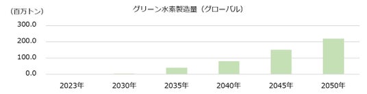 (製造量の補足:2030年500万トン、2040年8,000万トン、2050年2億2,000万トン)