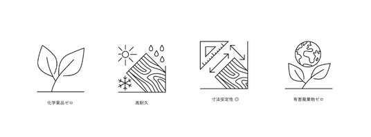 サーモウッドは、温度や湿度の変化による、反りや膨張、収縮の影響を受けにくい木材です。