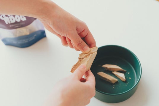 サクッと軽い質感なので、手で割ってそのまま与えたり、お湯でふやかして柔らかくしたりと、犬種や健康状態に合わせて与えることができます。