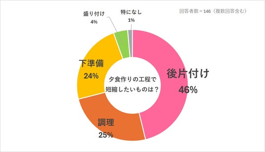 「調理」、「下準備」の回答も一定数ありましたが、「後片付け」の工程を短縮したいとの回答が約半数を占めていました。