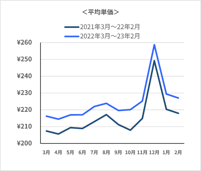 平均単価は前年比約4.2%増、平均数量約5.0%減