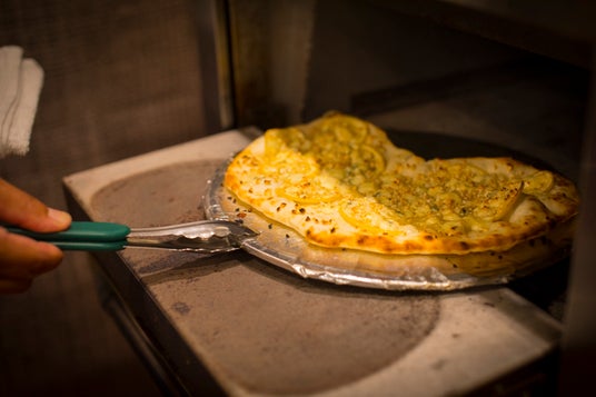 ピザ窯でこんがり焼き上げ