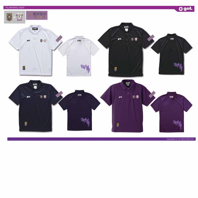 藤色プロジェクトの一環で、市がコラボポロシャツを作製しました。このポロシャツは、蹴球都市ロゴと藤枝MYFCエンブレムをあしらったデザインとなっており、藤・黒・紺・白の全4色作製しました。静岡三国決戦に向けて、市をあげて藤枝MYFCを応援するため、5月16日(火)のクールビズ開始に合わせ職員が着用します。
