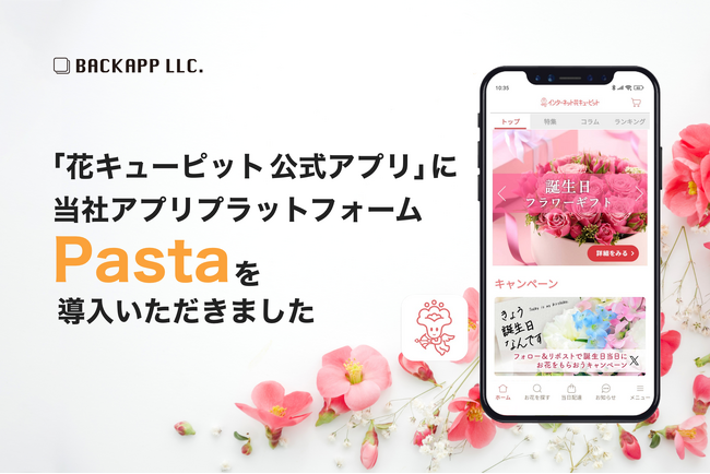 合同会社バックアップ(所在地:千葉県習志野市奏の杜2-2-2-1315、代表社員:岡田耕治)が提供するアプリプラットホーム「Pasta」が、花キューピット株式会社(所在地:東京都品川区北品川4丁目11番9号 日本フラワー会館2階、代表取締役社長:吉川 登)が運営するアプリ「花キューピット公式アプリ」に導入されました。
