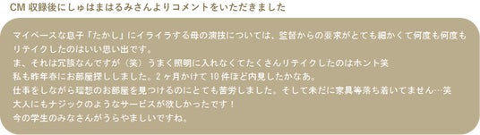 続けて「一人暮らしの部屋どうするの!?」という母の問いに対して、「決めたよ!ナジックがあったから簡単に探せたよ」と答え、まさかときょとんとする母に、ナジックのサービスの特徴をすらすらと説明。