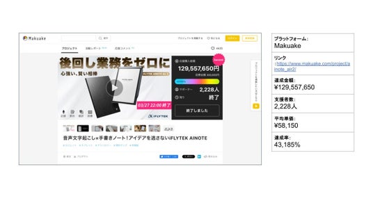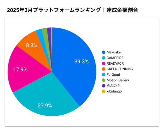 達成金額では「Makuake」が全体の39.3%を占めトップに。