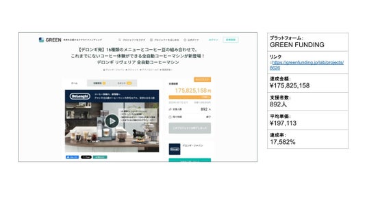 一方、GREEN FUNDING × ガジェット分野では、少数ながら高額支援が目立ちました。